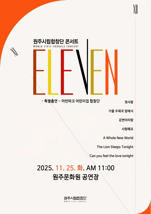 원주시립합창단 콘서트 일레븐이 5월에도 문화원에서 진행됩니다. 이번 콘서트 일레븐은 객원지휘자로 함께하고있는 이동규...