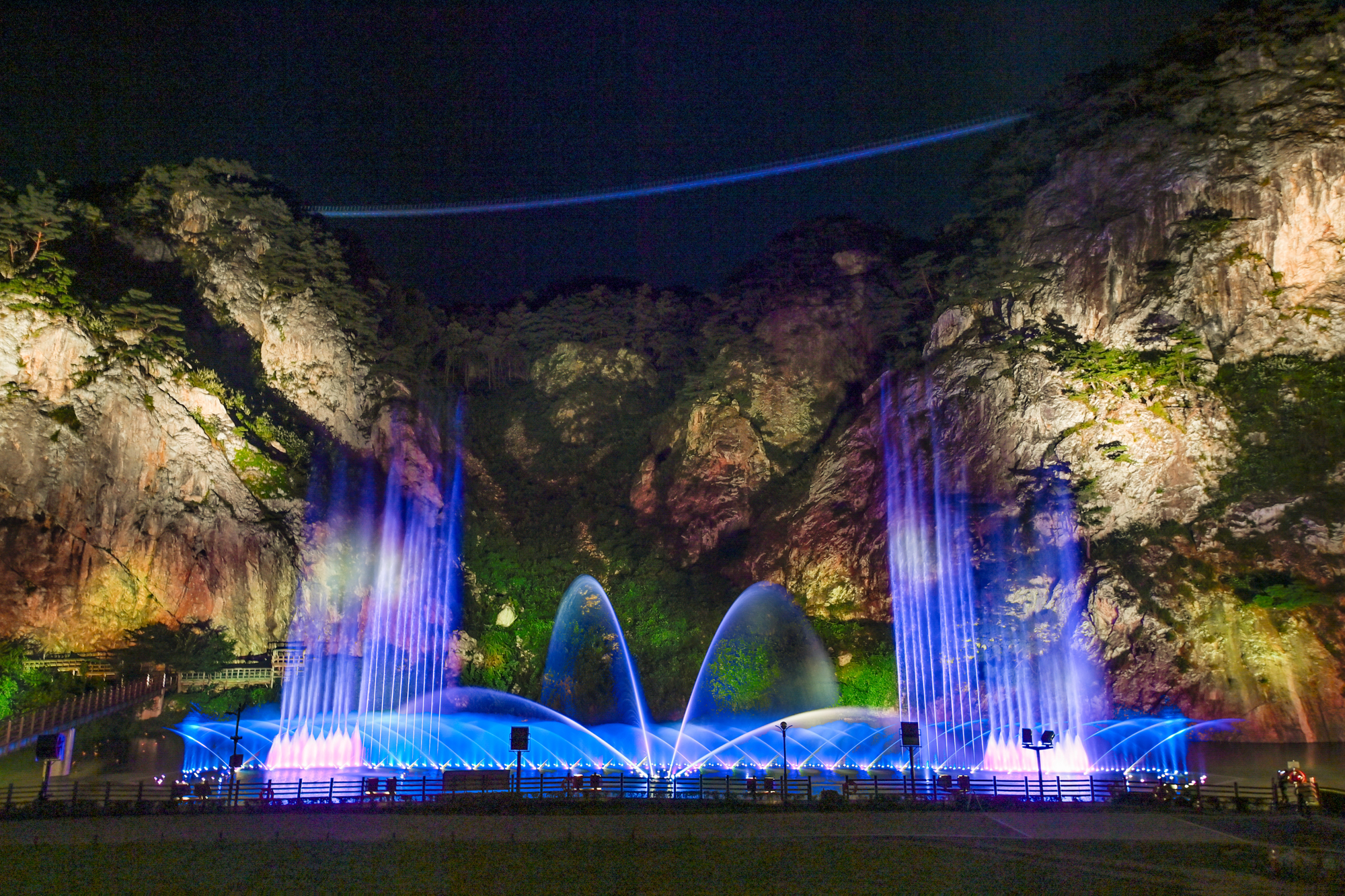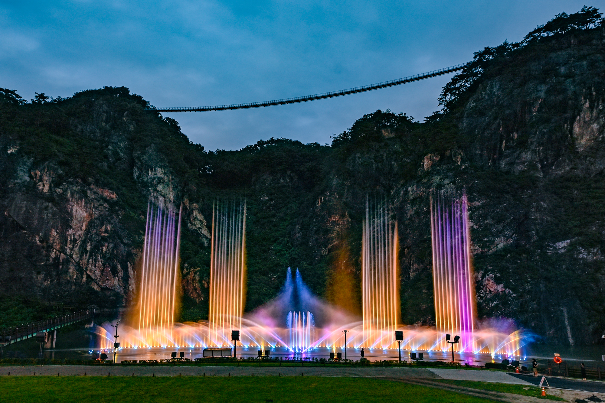 소금산 절벽을 배경으로 펼쳐지는 멋진 음악과 역동적인 분수쇼