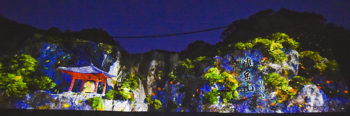 12대의 37,000안 시급 빔프로젝트를 간현관광지내 자연암벽에 비춰 양상을 표현하는 것으로 폭 250m, 높이 70m의 국내 최대 규모와