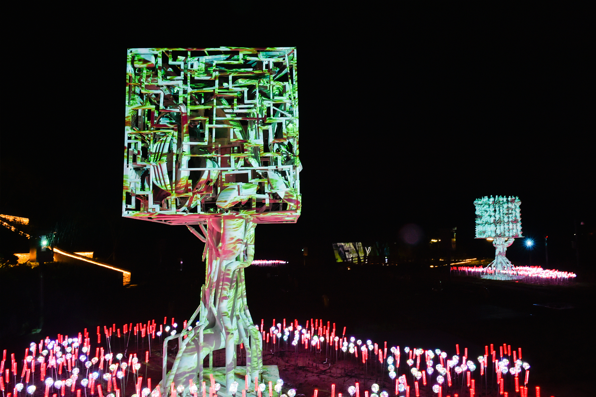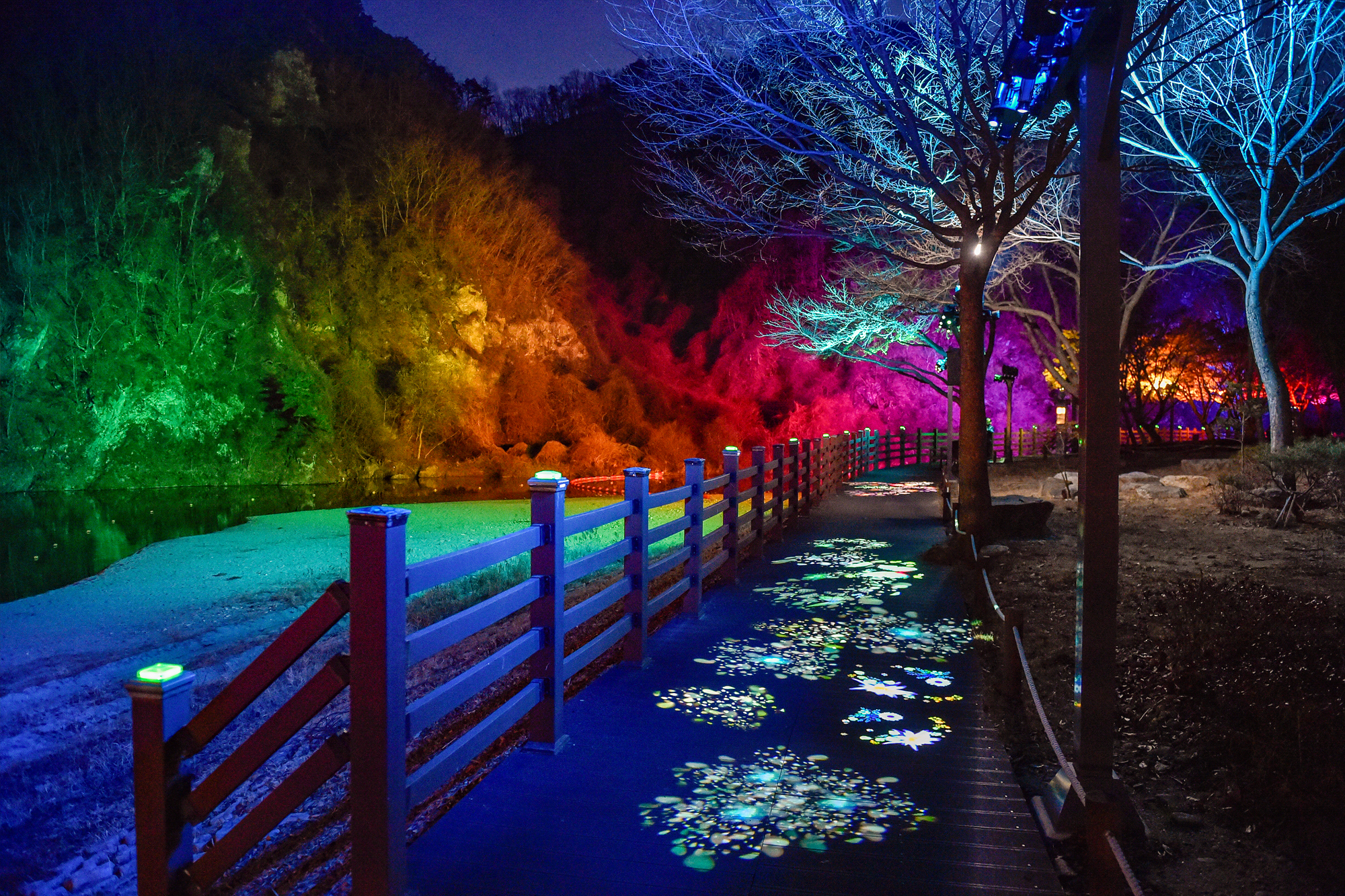 조형물, 수목조명이 밝히는 신비로운 숲을 지나 천협을 주제로 한 몽환적인 홀로그램까지, 빛이 그리는 풍경화 나무가 속삭이는 이야기 속