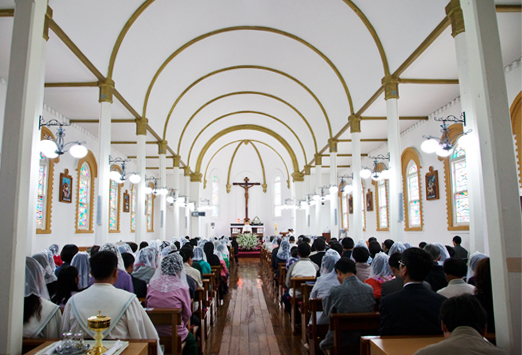처음에 성당건물은 초가집이 었는데 시잘레 신부(Pierre Chzalle)에 의해 벽돌건물로 지어지게 되었다.